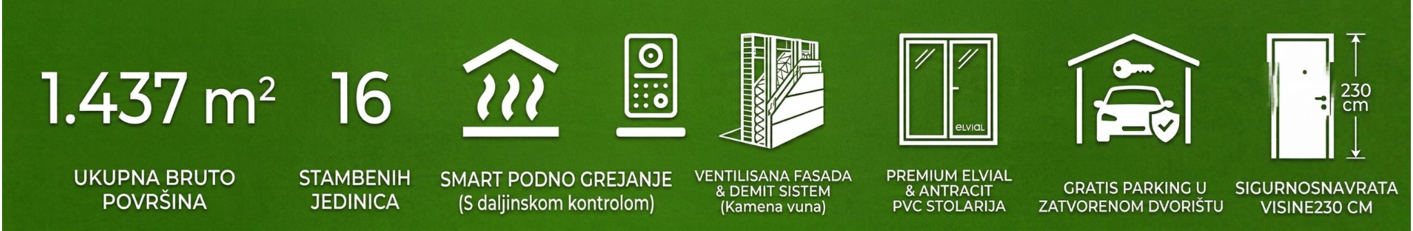 Poseban benefit: Uz svaku kupljenu stambenu jedinicu dobijate gratis parking mesto u okviru zatvorenog dvorišta.